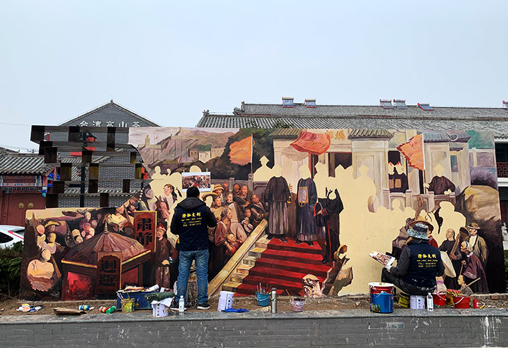 墻繪繪畫中,選圖比較復(fù)雜兩位繪畫的大哥,在墻上又涂又畫,忙的不可開交。