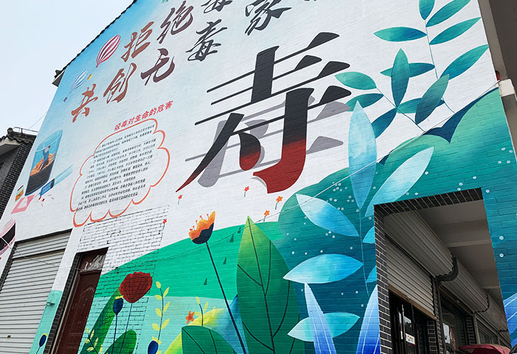 社會公益墻繪右邊壽命的“壽”字下面潛藏著毒品的“毒”