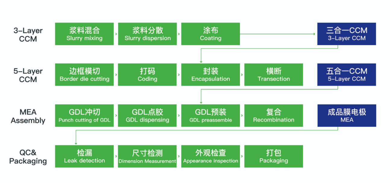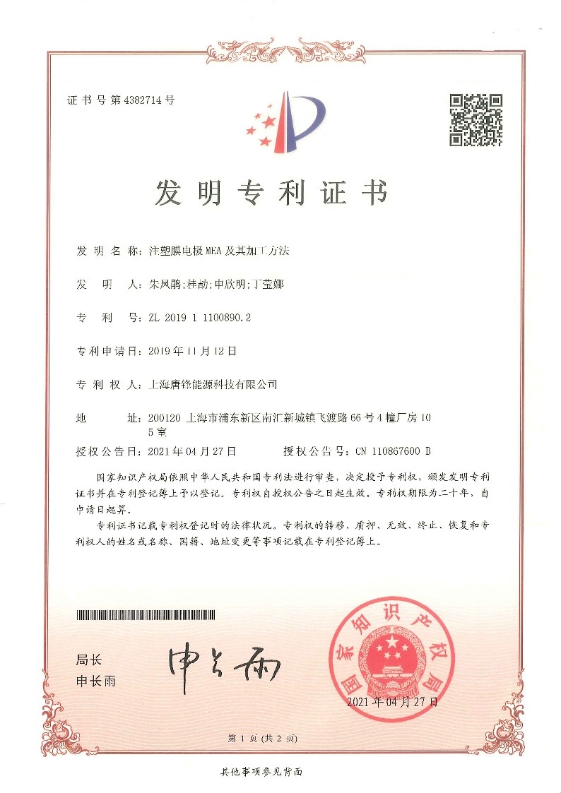 唐鋒能源自主開(kāi)發(fā)的柔性五合一封裝、七合一組裝的自動(dòng)化設(shè)備;建成了國(guó)內(nèi)首條用于量產(chǎn)燃料電池汽車的低鉑合金膜電極生產(chǎn)線,通過(guò)IATF16949認(rèn)證。